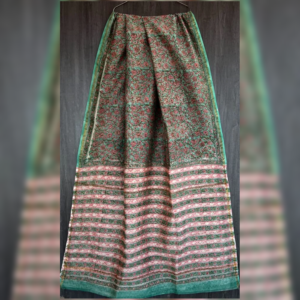 Hand block printed chanderi silk saree with blouse piece.