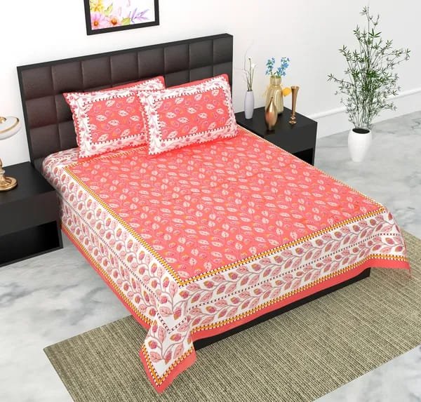 RAJASTHANI JAIPURI DOUBLE BED BEDSHEET. MADE WITH 100% COTTON FABRIC WITH BREATHABLE MATERIAL KEEPS YOU COOL. BEDSHEETS ARE MACHINE WASHABLE AND RESISTANT TO FADING.